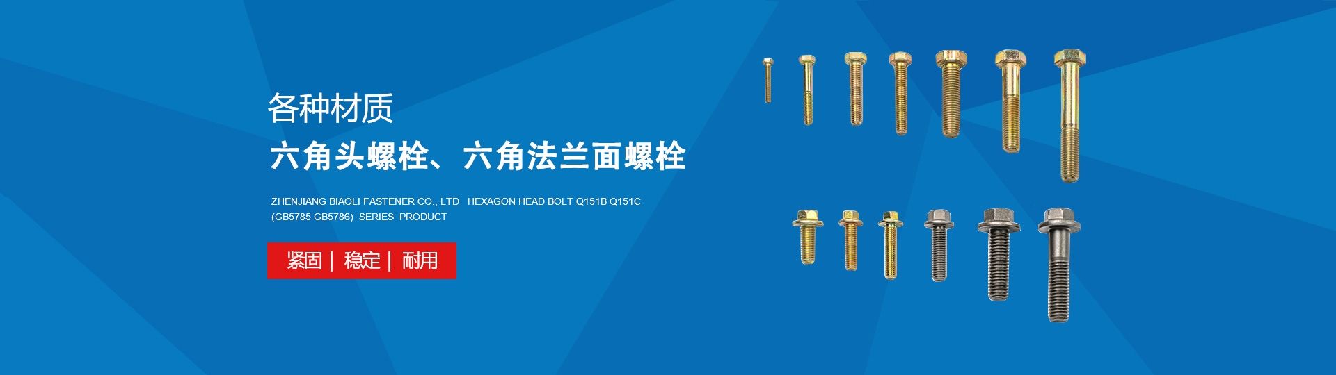 鎮(zhèn)江市標力緊固件有限公司是國家中型企業(yè),中國汽車工業(yè)協(xié)會聯(lián)合體成員廠之一,江蘇省明星企業(yè),位于江蘇省鎮(zhèn)江市諫壁鎮(zhèn)。 目前專業(yè)生產(chǎn)各類型螺栓、螺母、鉚釘、銷軸、墊圈及各類非標準件產(chǎn)品,產(chǎn)品注冊商標為“BL”牌。